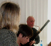 Le travail sur les différents claviers complémentaires (clavecins, clavicorde et orgue positif) a été très enrichissant pour les clavecinistes. Le but de ces journées était moins le progrès technique que le développement de la sensibilité du toucher des claviers, sensibilité qu'autorise, seule, la possibilité de passage d'un instrument à l'autre. La dimension du clavier comme pièce maîtresse du continuo baroque a été privilégiée pendant ces journées dans le cadre de la pratique de la musique d'ensemble. Les partitions avaient été distribuées et donc travaillées en amont du stage. La mise en commun, la prise d'initiative dans le groupe, l'écoute et la maîtrise du caractère d'ensemble sont donc les points sur lesquels a été mis l'accent pendant le travail collectif. |
